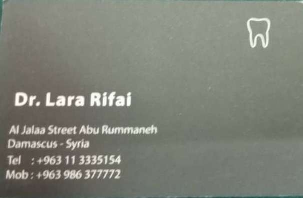 Dr. Lara Rifai Al Jalaa Street Abu Rummaneh Damascus – Syria Tel: +963 11 3335154 Mob: +963 986 377772