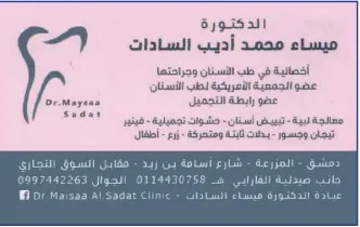 أخصائية في طب الأسنان وجراحتها عضو الجمعية الأمريكية لطب الأسنان عضو رابطة التجميل