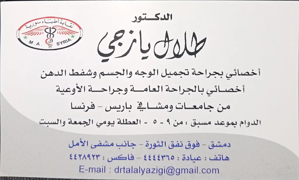 أخصائي بجراحة تجميل الوجه والجسم وشفط الدهن أخصائي بالجراحة العامة وجراحة الأوعية من جامعات ومشافي باريس – فرنسا
